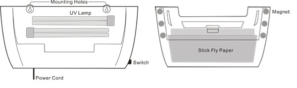 Attract flying insects by emitting UV light at 352 nanometres, the optimum wavelength for insect attraction. Attracted into the unit insects are entrapped on a glue board discretely hidden within it. Removable front cover with high strength magnets connect(for easy servicing).