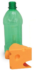 Mice enter the cheese shaped entrance and are humanely caught unharmed inside the bottle. Once caught the mouse feels very comfortable and safe inside the bottle, becomes relaxed and nibbles on bait and often falls asleep. |