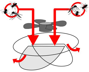 Powerful fan suck in arriving pests, trapping them into the net. Propane and chemical free, this pest eliminator is extremely efficient. Trap Features Exclusive UV Lamps. Powerful fan to trap insects into the retaining net Quiet, and odorless No propane tanks or attractants to refill Protects up to 2 acre Can be used indoors or outdoors Durable Plastic Construction Low profile-easy to move Easy assembly, no tools required